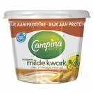 Campina Yoghurt naturel pak à 1 liter of beker à 450 gram of kwark beker à 500 gram, Prijsvoorbeeld: Campina Magere milde kwark met ‘n vleugje aardbei, 2 bekers à 500 gram 3.98 1.99