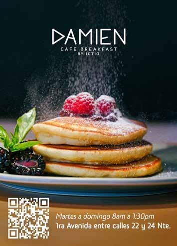 DAMieN cAFÉ BReAkFAsT cafetería especializada en café de altura traído desde Veracruz y desayunos deliciosos, te recomendamos probar los huevos benedictinos y enfrijoladas. ¡Y lo mejor! Tienen una promoción todos los días en mimosas 2 x $135. 1ra Av. entre calles 22 y 24. Playa del carmen. Damien café Breakfast