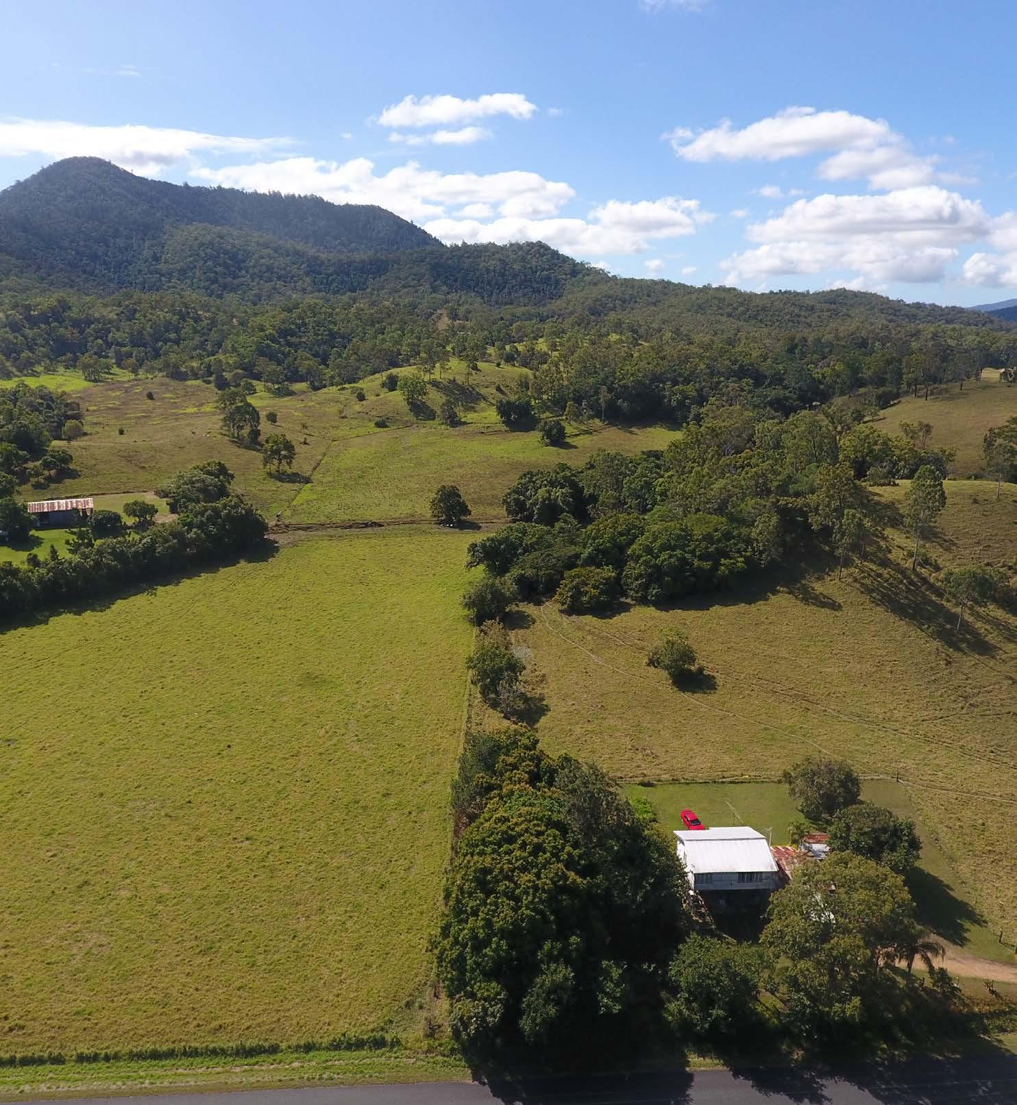 Located in the picturesque Pioneer Valley about 50 kilometers west of Mackay, this cattle breeding property comprises two freehold titles plus a road license with a Total area of 110.36 hectares or approximately 272.7 acres.