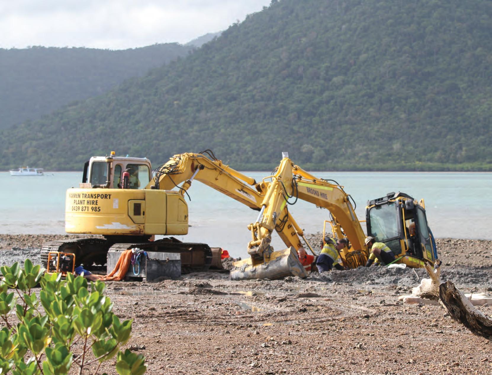 The recent bogging of an excavator in Shute Harbour has raised questions for local environmental group Whitsunday Conservation Council (WCC) who are concerned any new development would cause damage to the environment and create safety issues for mariners.