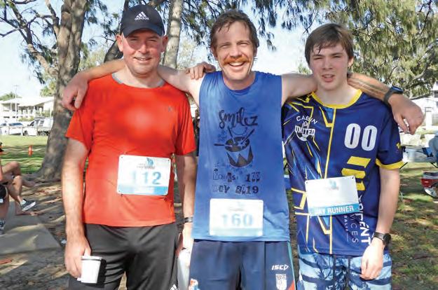 Craig Robinson, Ashleigh Miles and Max Miles are thrilled with their efforts in the Sladie Sand Dunes very testing trail running event