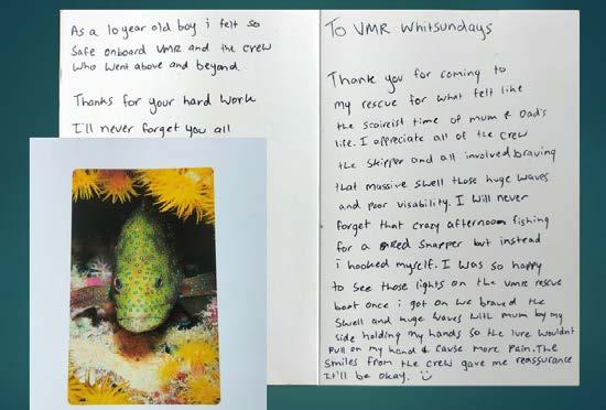 “As a 10-year-old boy I felt so safe onboard VMR and the crew who went above and beyond,” the youngster wrote.