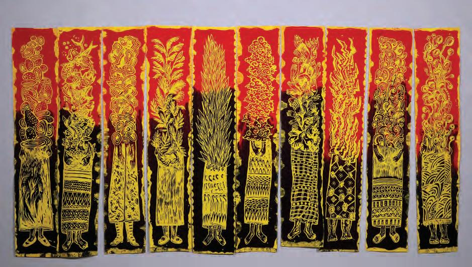 Dias Prabu is an artist, painter, muralist, and creator of batik tulis (hand-drawn batik) living and working in Yogyakarta, Indonesia. Prabu employs the technique of traditional batik tulis to create large-scale hand dyed textile works as a vessel for storytelling and connecting with his ancestry.