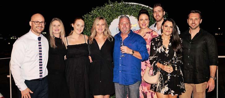 Around 500 people enjoyed the lights and laughter of Dinner on the Runway. L-R: Amanda Wright, Hamish Wright, Michelle Cross, Steven Cross, Josh Smith, Jordana Abela, Haley Crofts, Maree Sturdy, Jason Crofts, Jeff Sturdy. Photo credit: Coffee and Hops