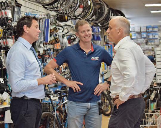 Dan Purdie MP, Evan Corry and Nigel Dalton discuss the impact of repeated break-ins on local businesses, highlighting the need for stronger consequences and better rehabilitation for offenders. Photo credit: Amanda Wright