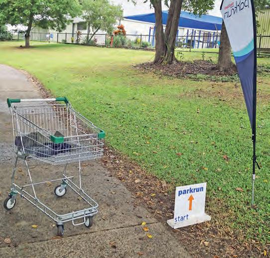 even crossed the parkrun finish line, much to the amusement of onlookers. Together, the pair rattled off down the road on foot and returned the wayward cart safely, snugly with its other trolley companions in the collection ranks.