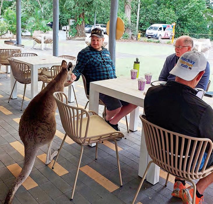 “Skippy” chatting with Timekeeper, Rohan Miles at the beautiful Cape Hillsborough Resort