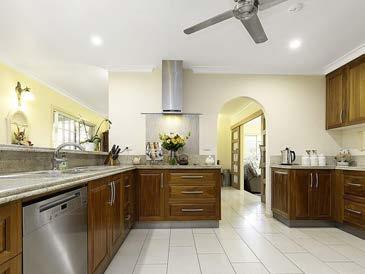 - Tastefully designed kitchen with ample cupboard and bench space, stone top benches, gas stove, electric oven, dishwasher, and butler's pantry