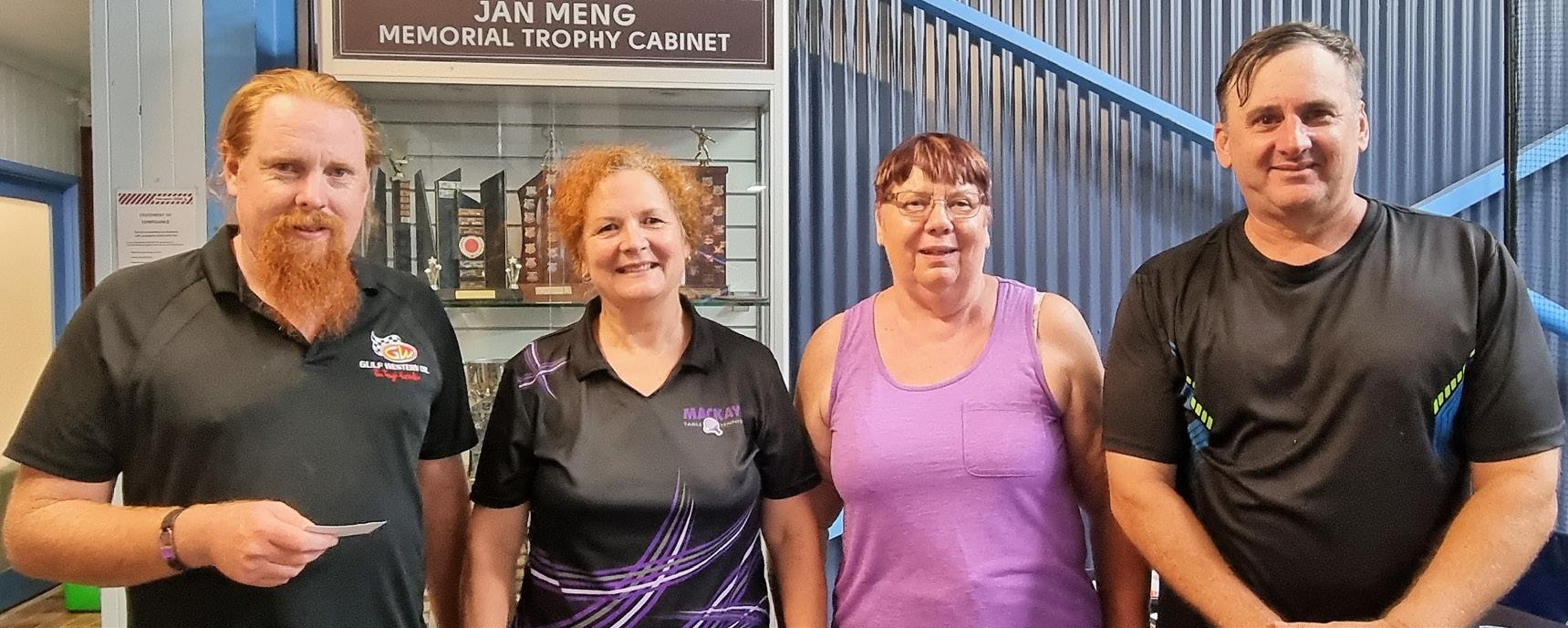 Division 2 runners-up Simon Hogan, Noreen Fredericksen and Mark Sleeman with treasurer Donna Abbott
