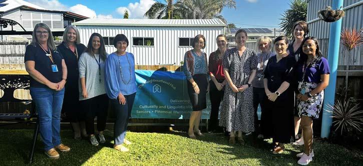 Mackay Community Foundation board chair Frances Easton with the 2023 grant recipients: CQUniversity Unicare Emergency, Mackay Community Visitors Association, Phoenix Place Inc., Crossroad Arts, Ronald McDonald House Charities North Australia, Selectability, Kidney Support Network and Australian Street Aid Project