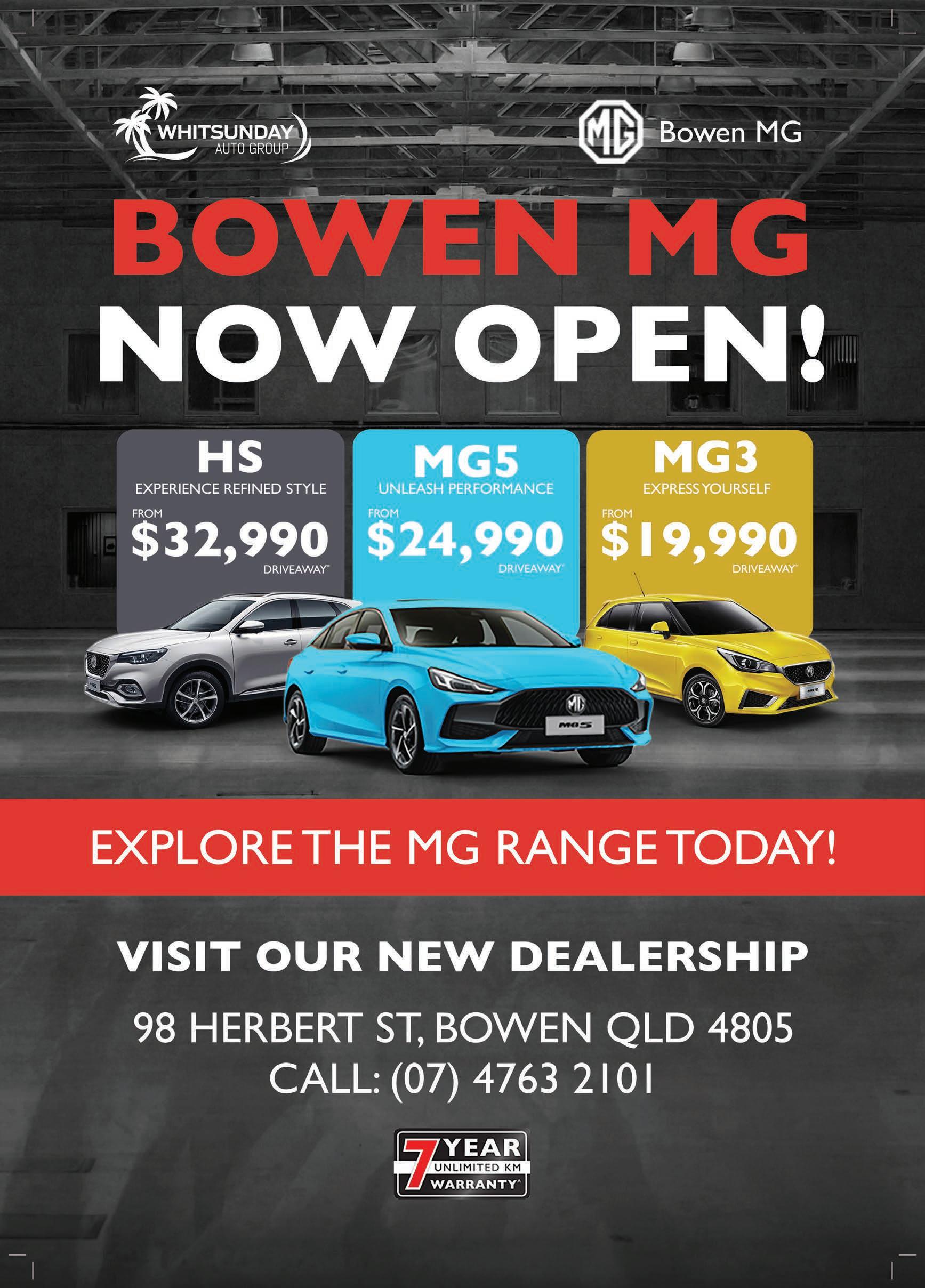 CONTACT US INSIDE Community News 1 - 15 Rural to Reef 11 Beautiful Bowen 16 - 18 Business & Finance 19 Social Life 20 - 28 Sport 29 - 32 Classifieds 32 - 33 Puzzle 34 Property Guide 35 - 37 T V Guide 38 - 39 Go to the main street round about Go up the stairs that look like this LAZY JOE’S CANTINA BRINGING MEXICAN STREET FOOD + DRINK TO AIRLIE BEACH FROZEN MARGARITAS FROM $9.90 BOOK ON OUR WEBSITE www.lazyjoes.com.au 6/1 Airlie Esplanade, Airlie Beach