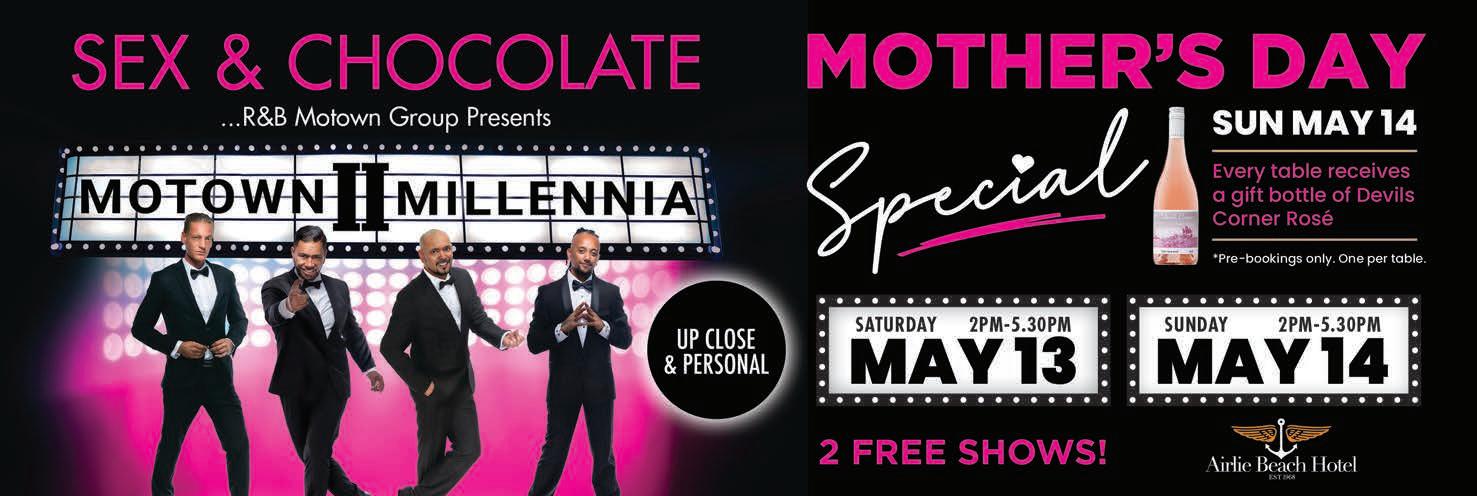 07 4786 1044 Proudly Local & Mighty Helpful 56 Powell St 56 Powell St Powell Powell 56 Powell St BOWEN Colour your home GARDEN POTS POTS 07 4786 1044 Proudly Local & Mighty Helpful 56 Powell St 56 Powell St 56 Powell St BOWEN Colour your home GARDEN POTS Colour your home GARDEN POTS Brighten Mum’s Day! Reservations recommended 07 4948 1888 Beachfront • 6 The Esplanade • Airlie Beach Full a la carte menu plus Chef’s Blackboard Specials Lunch from 11:30am Dinner from 5pm Mother’s Day Sunda y, 8th May Sunday 14th May Continued from page 1. GRAPHIC EXPLANATIONS, LEWD