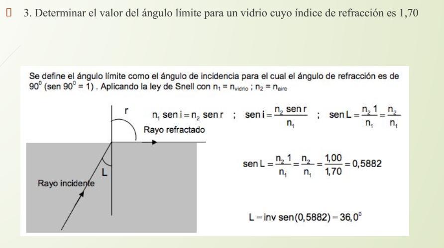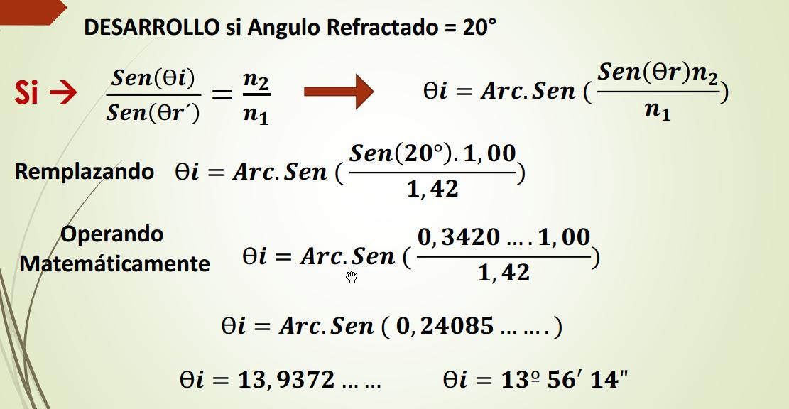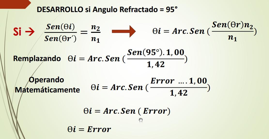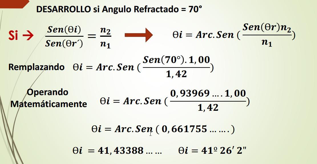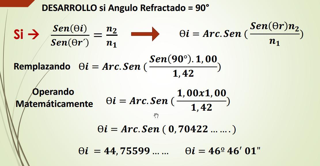 n1 = 1,00 n2 = 1,45 Rayo Refractado a 90° Ultimo rayo refractado Ultimo rayo de incidencia Que generara el ultimo Rayo Refractado