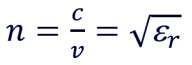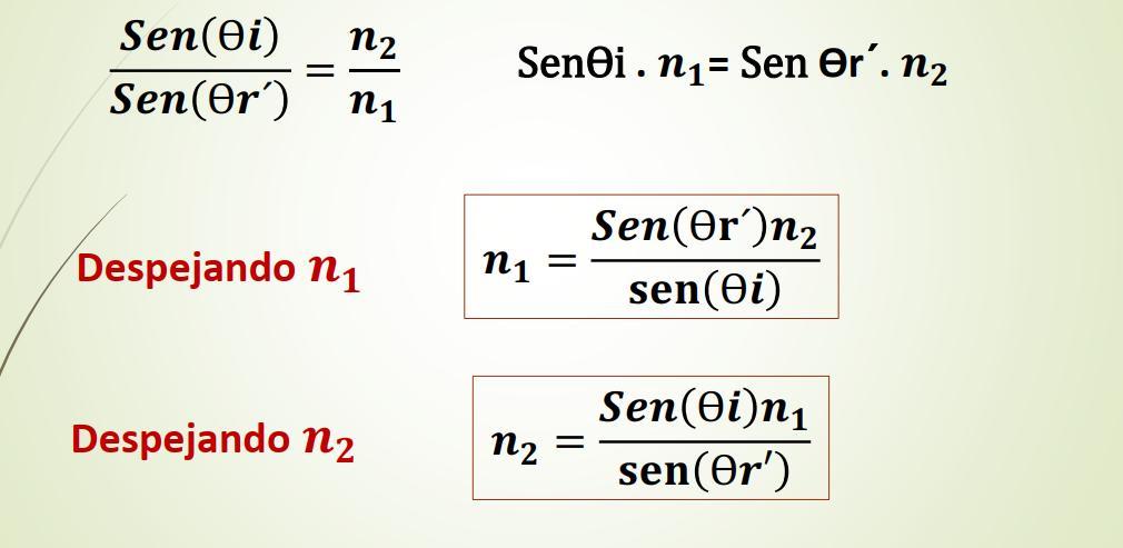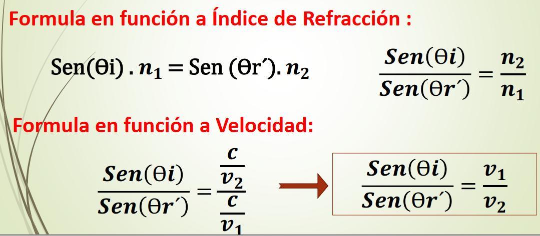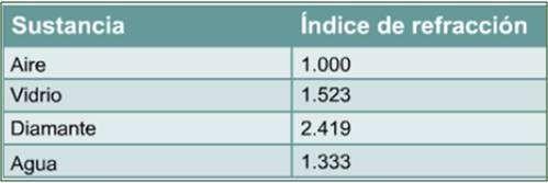 El índice de refracción (n) de una sustancia se define como la velocidad de la luz en el vacíodividido por la velocidadde la luz en esa sustancia.