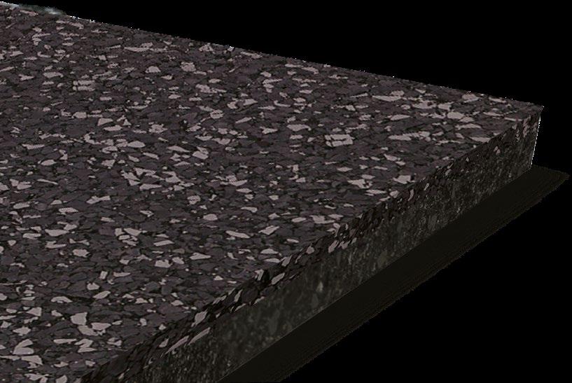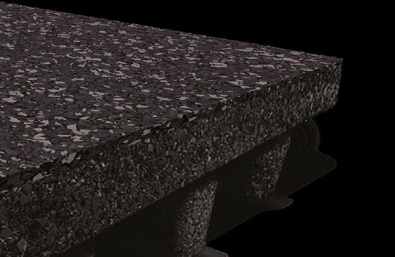 Ecore mines waste streams for high-performance raw materials – old truck tyres, for example – and energyefficiently upcycles them into premium quality, ecofriendly flooring for every area of the gym.
