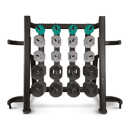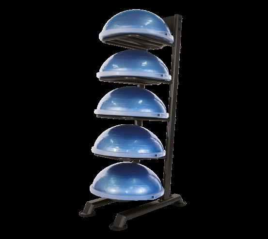 This redesigned and enhanced Multi Bag / BOSU® rack combines style and sturdiness. This stable storage solution includes curved tubing made from 3mm thick steel.