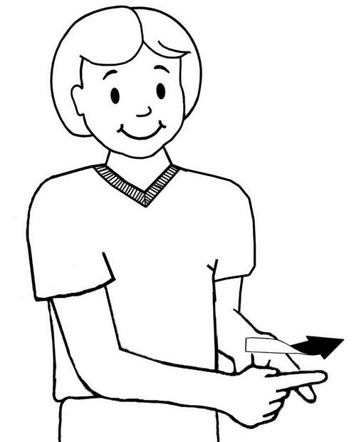 How to sign it: Hold the pointer finger of other hand still, pointing forward, palm sideways. Starting with pointer fingertip of main hand just above other fingertip at right angles, move finger so that it twists palm down and slides it length along lower fingertip.