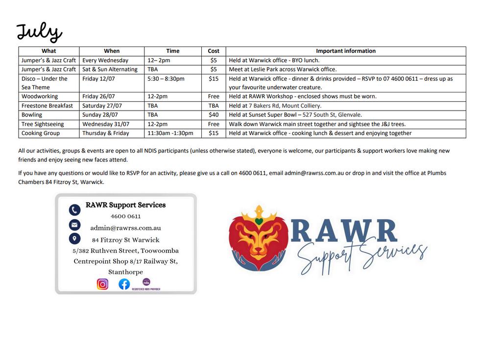 Earlier in the month, we had a morning tea at our Warwick office to say farewell and give our thanks to 2 wonderful Stanthorpe support workers. Our best wishes to you Darlyne for the newest member of your family arriving soon, and Pinni for your well-deserved retirement! Thank you both for being part of the RAWR family ����