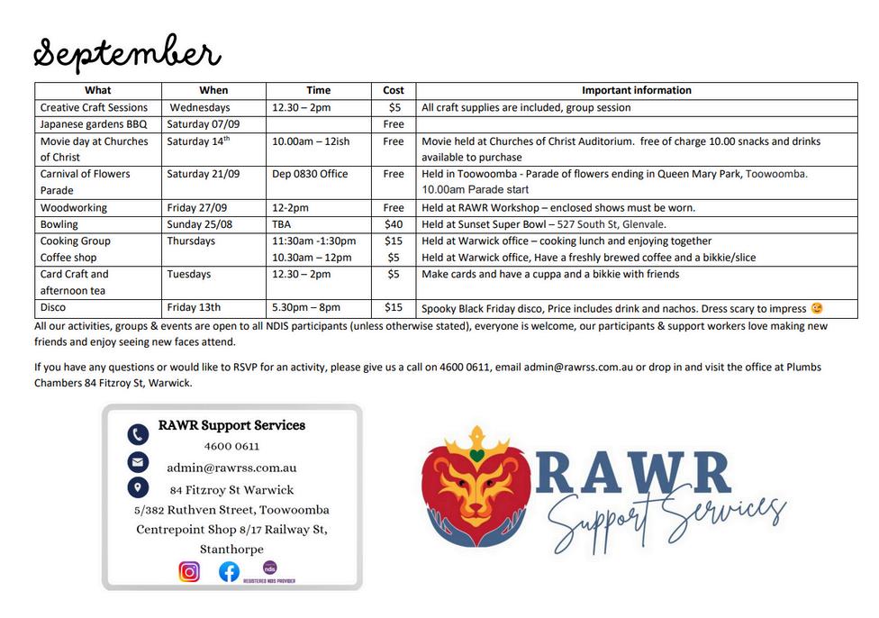 We also want to take a moment to acknowledge the wonderful work our support workers do every day, across three locations, Stanthorpe, Warwick and Toowoomba areas. Their dedication and care play a crucial role in empowering our participants, helping them reach their full potential and contribute to our community in meaningful ways.