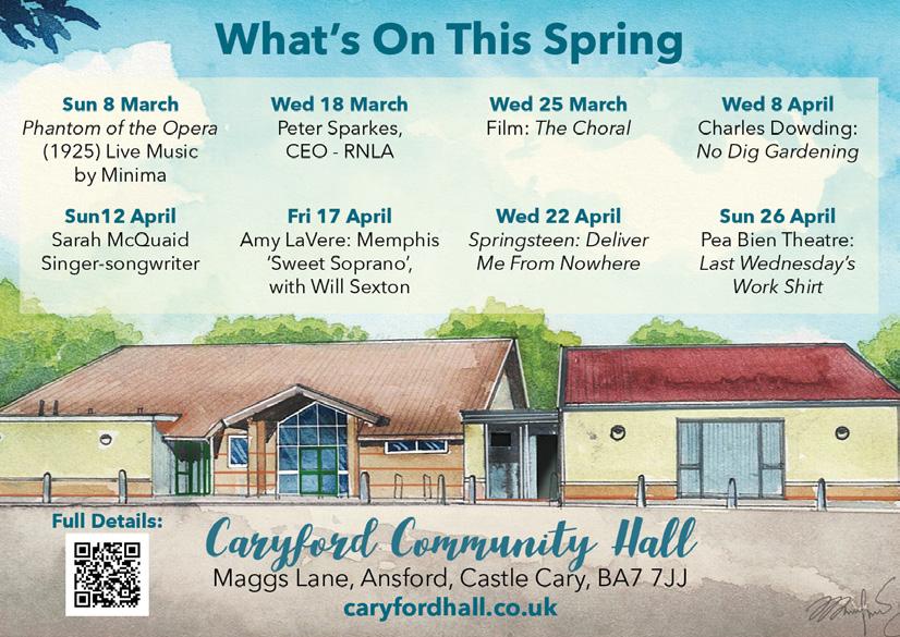 Scottish Country Dancing – St Michael’s Scottish Country Club – Thursdays until the end of June 2026 – 7.30pm –9.30pm at the Davis Hall, Howell Hill, West Camel BA22 7QX. First two visits free - £2 per session – £1.50 for members. Always a fun evening – come along and give it a try – a warm welcome is assured. No partner needed. Please bring a mug – tea, coffee & biscuits provided! www.stmichaelsscdclub.org or contact Secretary: Elspeth 07972 125617 elspeth_a_wright@hotmail.com