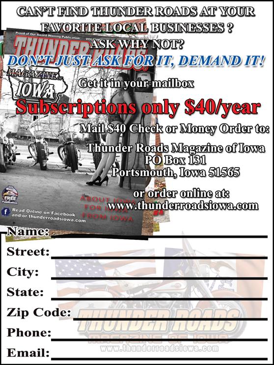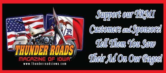 The Biker Friendly Business Directory is a list of establishments throughout Iowa that sponsor the magazine. You can pick up your copy here every month. Let them know that you saw them in TRMI. If your business would like to advertise in Thunder Roads