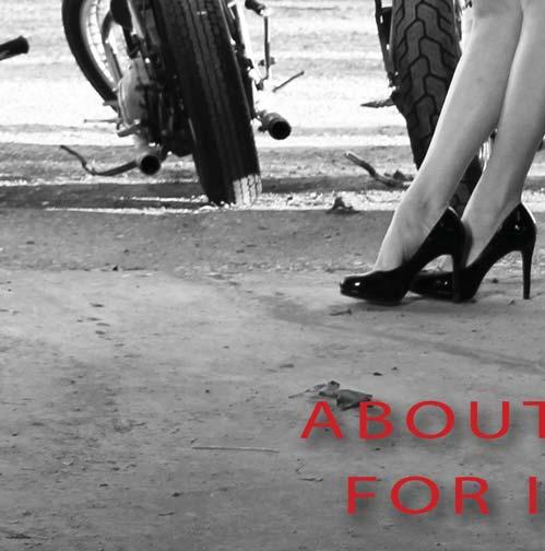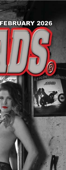 Ruby red lips and legs for days, that’s what Holli brought to the photos for this month’s cover and calendar! No stranger to m odeling, Holli has appeared in Natanic Pin-ups biker babe calendar many times, and for the photos seen here, “Natanic” Nate Ullrich cleared out his old garage, providing his vintage chopper collection as ornaments in the background, making Holli’s long-n-lean frame the main attraction! As a professional photographer, Nate rarely does photo-shoot s just for the fun of it, considering tight work schedules that have him all over the country, always require his work to have purpose as print and/or commercial projects. But with this shoot he tells us, “Holli and I were tossing back shots and brain-storming some photos ideas at the bar one night, and it all seemed like some cool shit coming together, so we decided to follow through with them, regardless of any intended purpose.” He goes on the add, “Holli is one of the most entertaining models I’ve worked with during a shoot, a lways bringing a smile, her bubbly humor, and bottle of whatever her fl avor is that week, ha, ha!” You can see more of Natanic’s work, and get a Free 2026 biker babe calendar with any order this m onth at Natanic.com