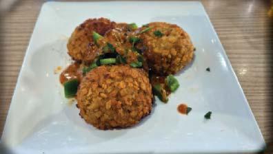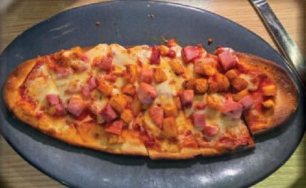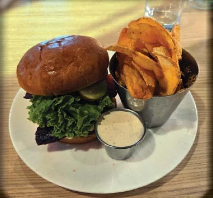 I ordered the Chicken Fried DeBurgo, which consisted of a juicy, crispy fried chicken breast served on creamy Asiago mashed potatoes and covered with an herb cream sauce. Jeremy also went the chicken route and ordered the crispy hand-breaded chicken strips served with housemade ranch and waffle fries. Donna ordered a flatbread Hawaiian Pizza that was deliciously piled high with ham and caramelized pineapple. Vernon ordered the Candied Bacon Cheeseburger. It arrived in all its 1/2-pound patty glory, topped with candied bacon, crisp lettuce, sliced tomato, mozzarella cheese, atop a perfectly toasted brioche bun. Vernon’s side was an order of crisp and delicious house made chips with a side of roasted garlic and chive dip.