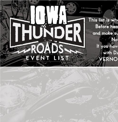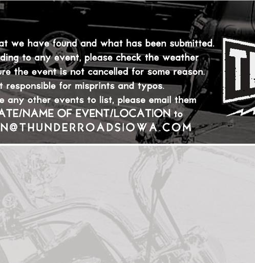 WE NEED YOUR EVENTS FOR THE REST OF THIS YEAR AND FOR 2026. PLEASE EMAIL THEM TO VERNON@THUNDERROADIOWA.COM INCLUDE DATE, EVENT NAME, AND STARTING LOCATION TOWN.