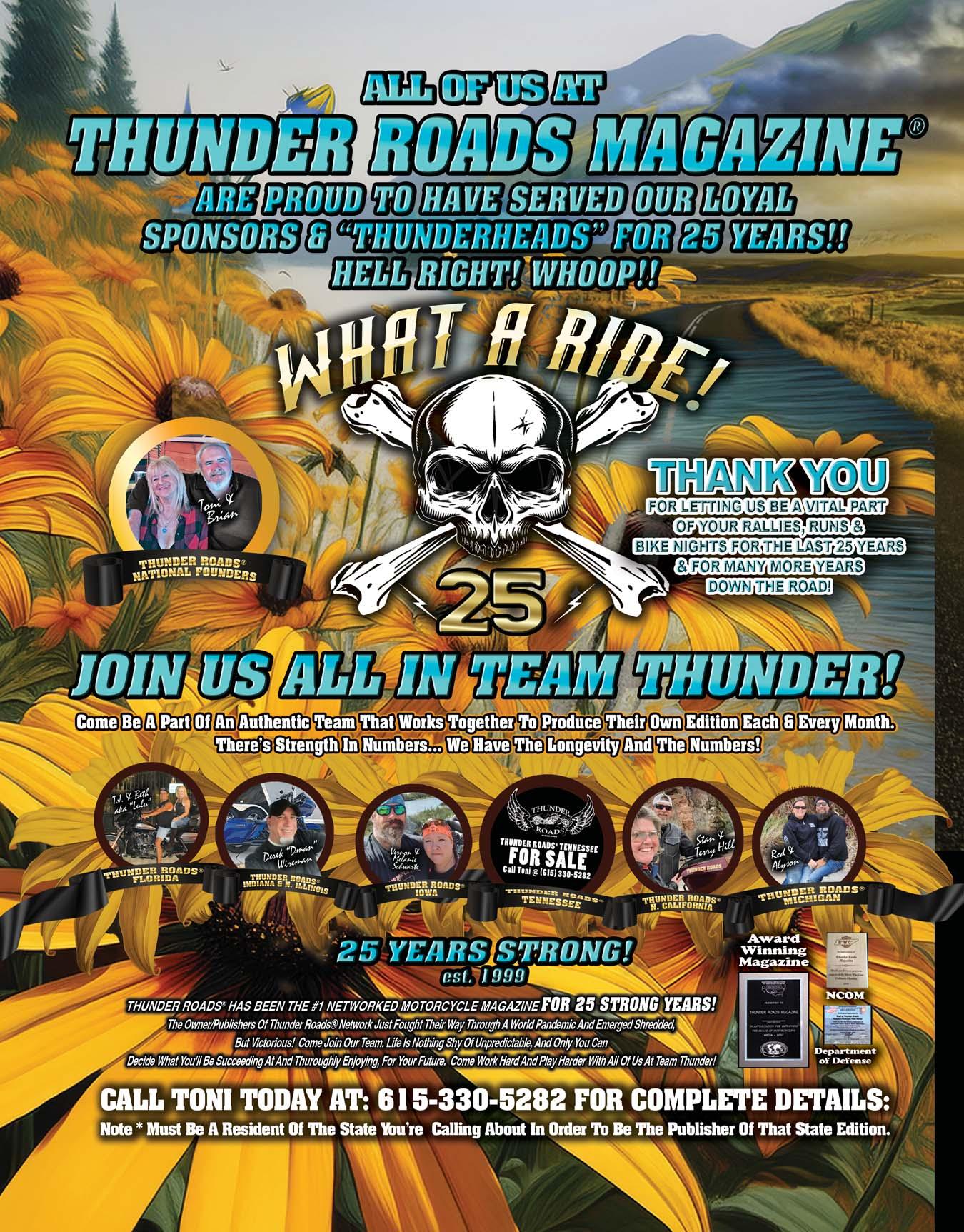 Proud Editor/Owner Thunder Roads Magazine of Iowa Owner Thunder Guns and Thunder Guns West IMDA Board Member
