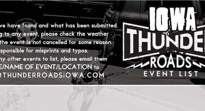 The Biker Friendly Business Directory is a list of establishments throughout Iowa that sponsor the magazine. You can pick up your copy here every month. Let them know that you saw them in TRMI. If your business would like to advertise in Thunder Roads Iowa Biker Friendly Business Listing and become a part of the network, please email vernon@ thunderroadsiowa.com