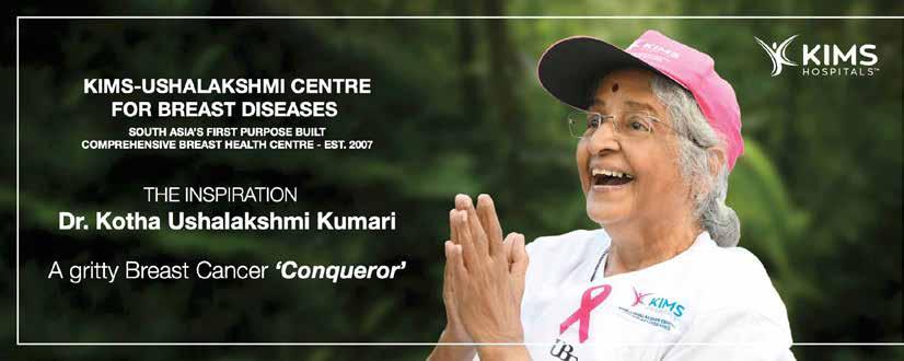 An unplanned mammography of the breast led to the discovery of a lump for Dr Prathyusha Prasad. She did not let the cancer get her down because she never saw it as a ‘life-threatening’ disease. With the support of her family and her colleagues at KIMS Hospitals, this dental surgeon, who believes that one should not worry about what life gives us and go with the ‘ ow’, managed to ght her cancer with fortitude