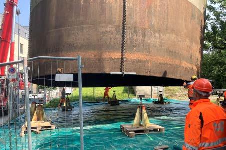 WWZ beauftragte spezialisierte Unternehmen mit den Arbeiten. Hier wird der Glockenbehälter für die Rostbehandlung vorbereitet.