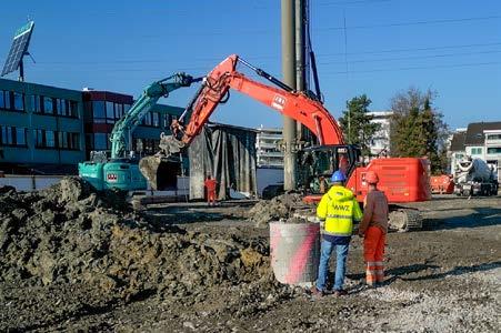 Die Energiezentrale wird auf 136 Pfählen errichtet. 8'888 Tonnen Beton und 480 Tonnen Armierungsstahl werden verbaut.