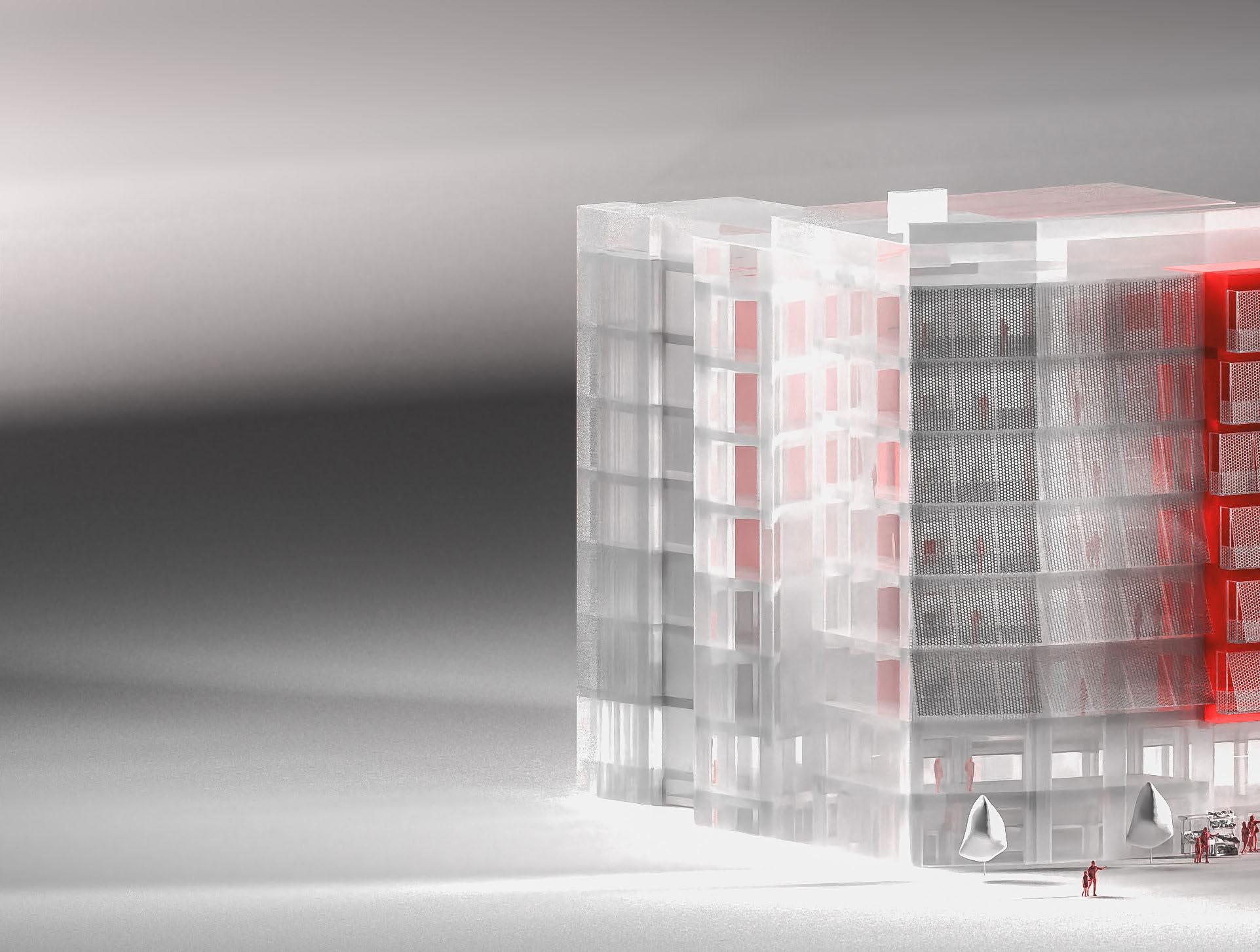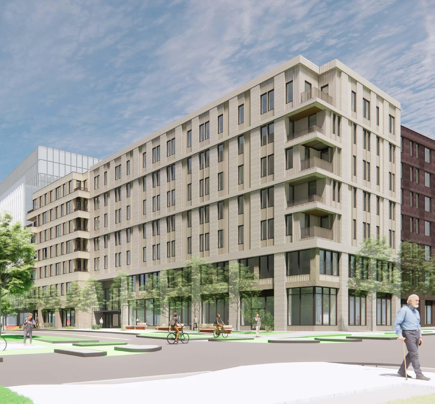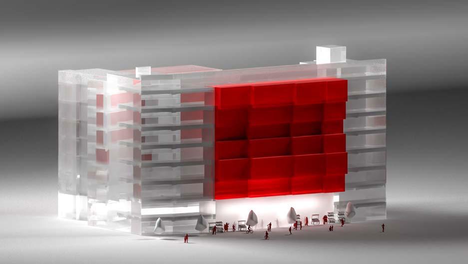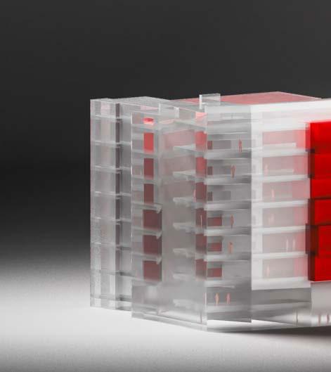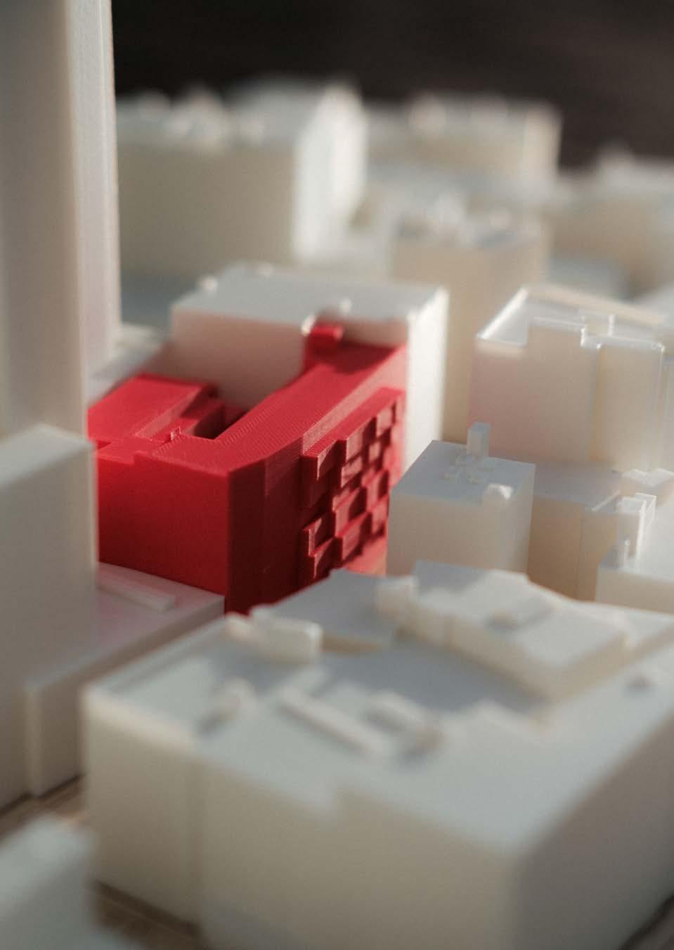 material, color, scale, texture, fnish, and form within each volume, seeking distinguishable identities while preserving a through line of a characteristic Boston vernacular. After several iterations, the team and clients landed on a monochromatic scheme of various materials. My contributions to the project culminated in a series of render perspectives, elevations, material studies, and physical facade mock-ups to be used in client and city meetings.