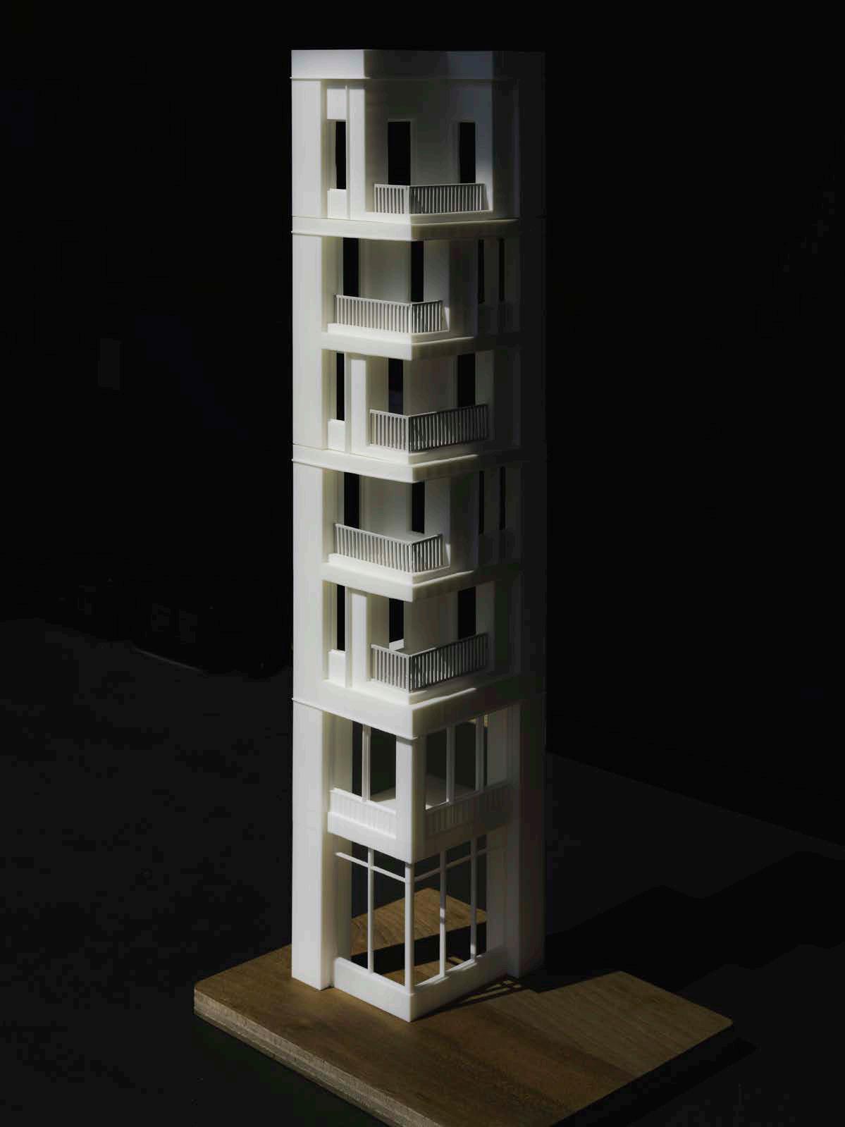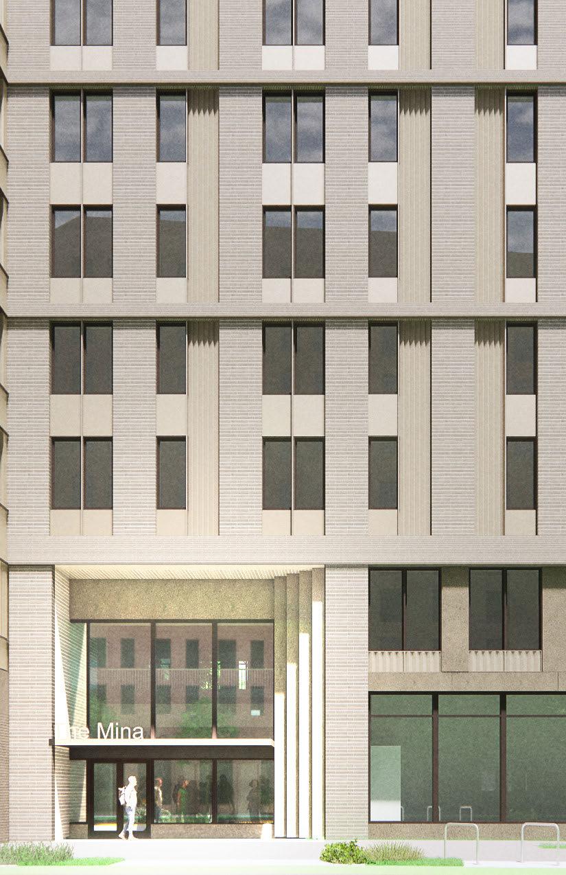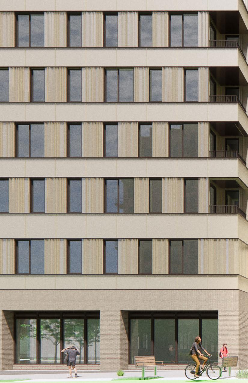 material, color, scale, texture, fnish, and form within each volume, seeking distinguishable identities while preserving a through line of a characteristic Boston vernacular. After several iterations, the team and clients landed on a monochromatic scheme of various materials. My contributions to the project culminated in a series of render perspectives, elevations, material studies, and physical facade mock-ups to be used in client and city meetings.