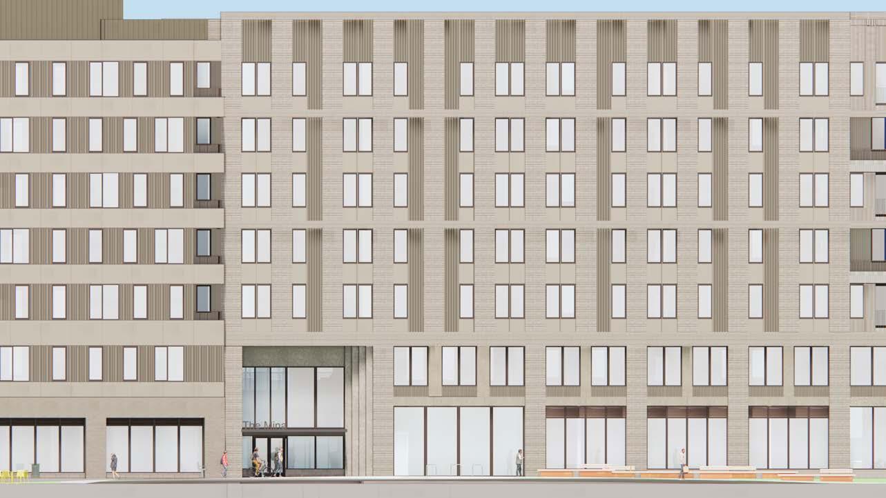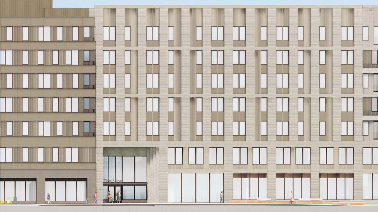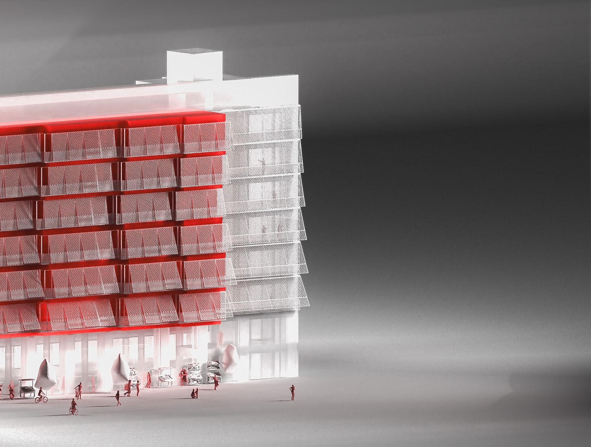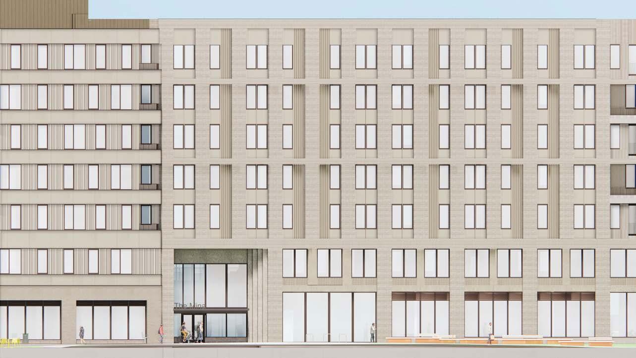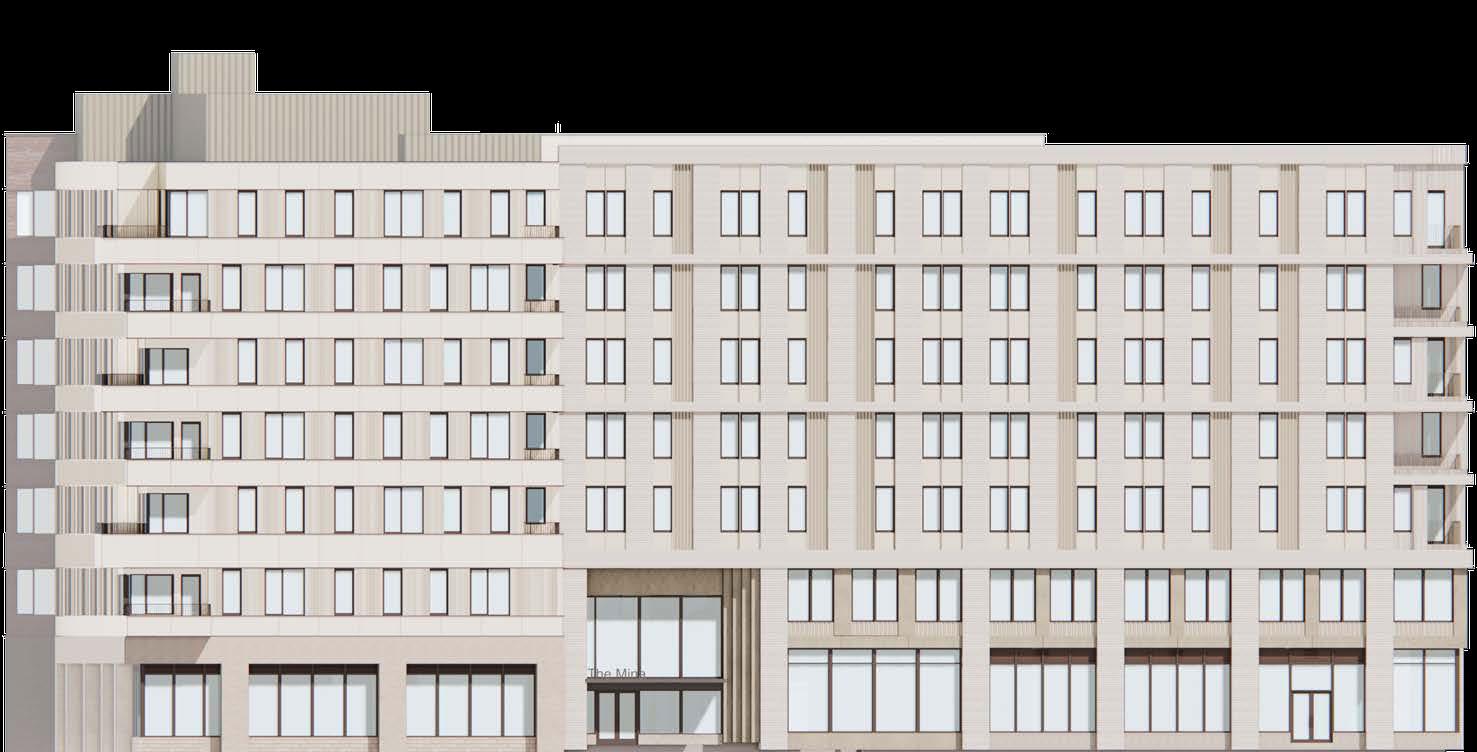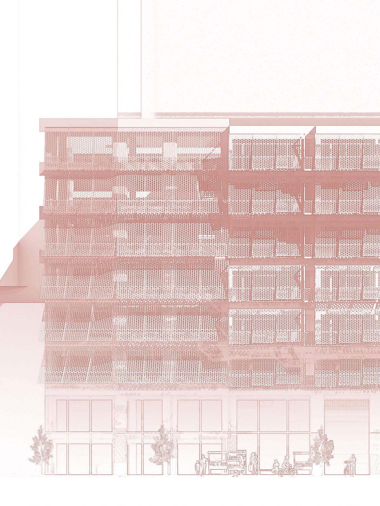 to levels one and two, the facade relationship to match vernacular mixed-use neighborhood’s historic garment lofts.