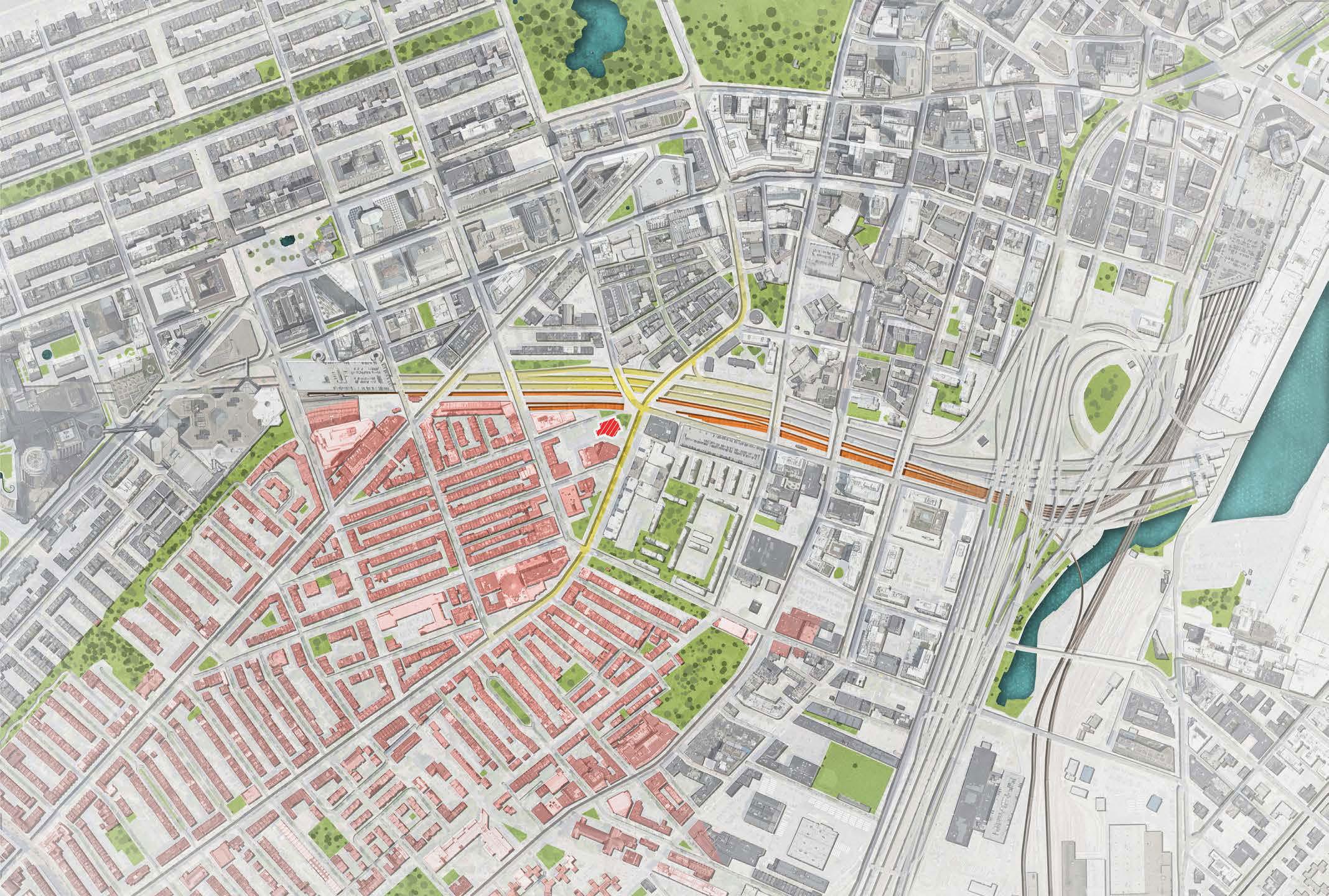Pocket Communities revitalizes the Mission Hill neighborhood with a network of pocket parks and rowhouses, providing the community with accessible and plentiful moments of gathering within intimate green spaces. The project’s concept roots itself in the belief that nature should not be visited, but lived in. The Mission Hill and Roxbury neighborhoods are only afforded large neighborhood parks that are only within walking distance to the immediate