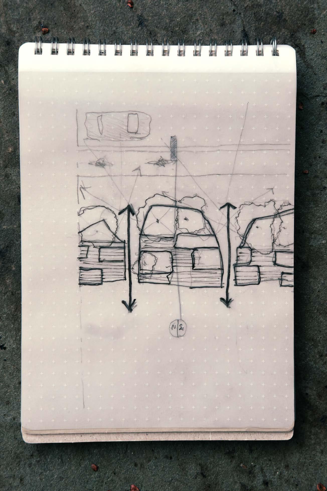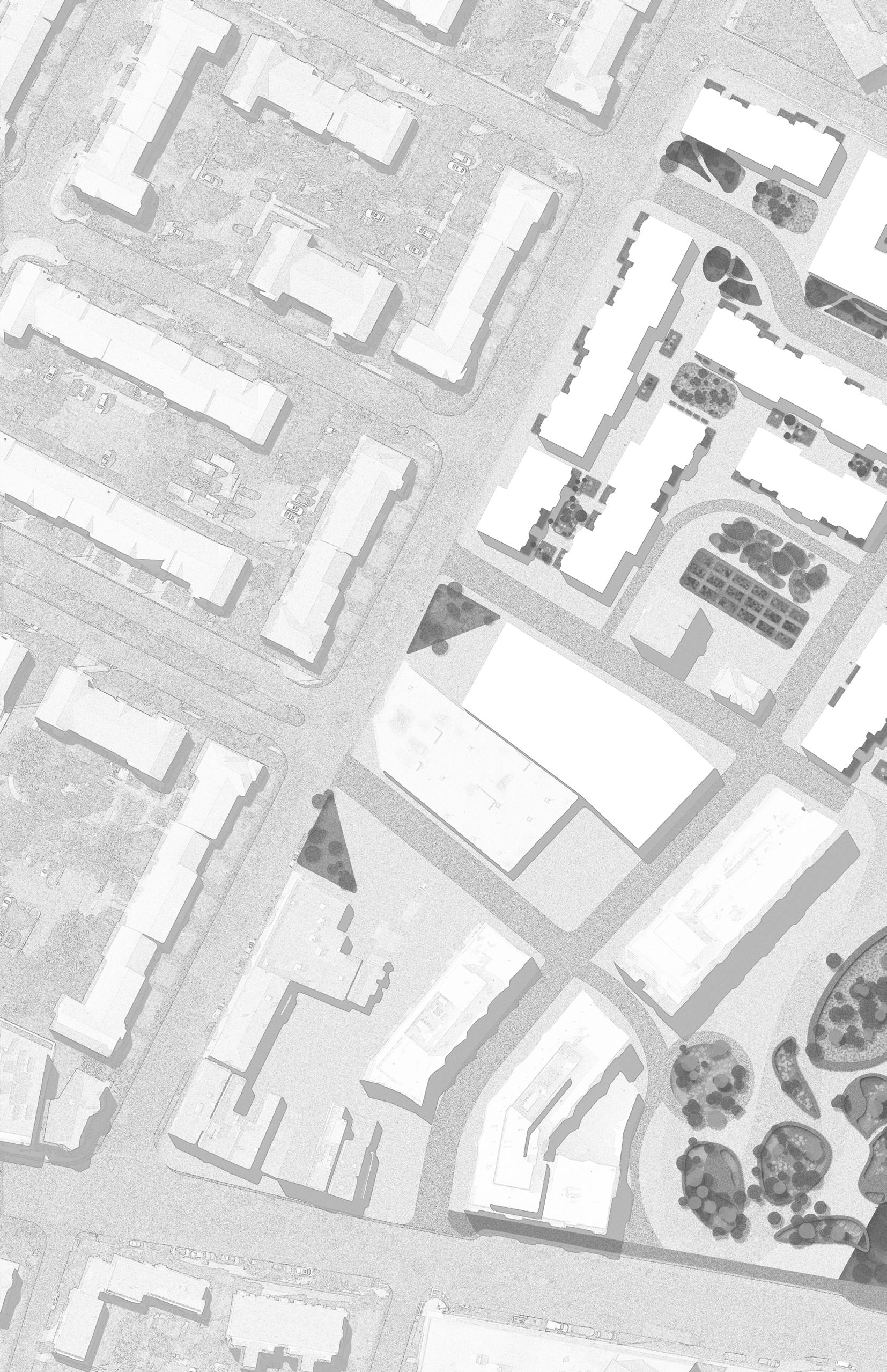 residents along the parks’ perimeters. Residents who live farther away must rely on vehicles to access green space, which exacerbates air quality and neighborhood safety. Pock Communities models itself on a equally weighted relationship of green space and architecture to enable pedestrianism, social capital, stoop culture, and neighborliness.