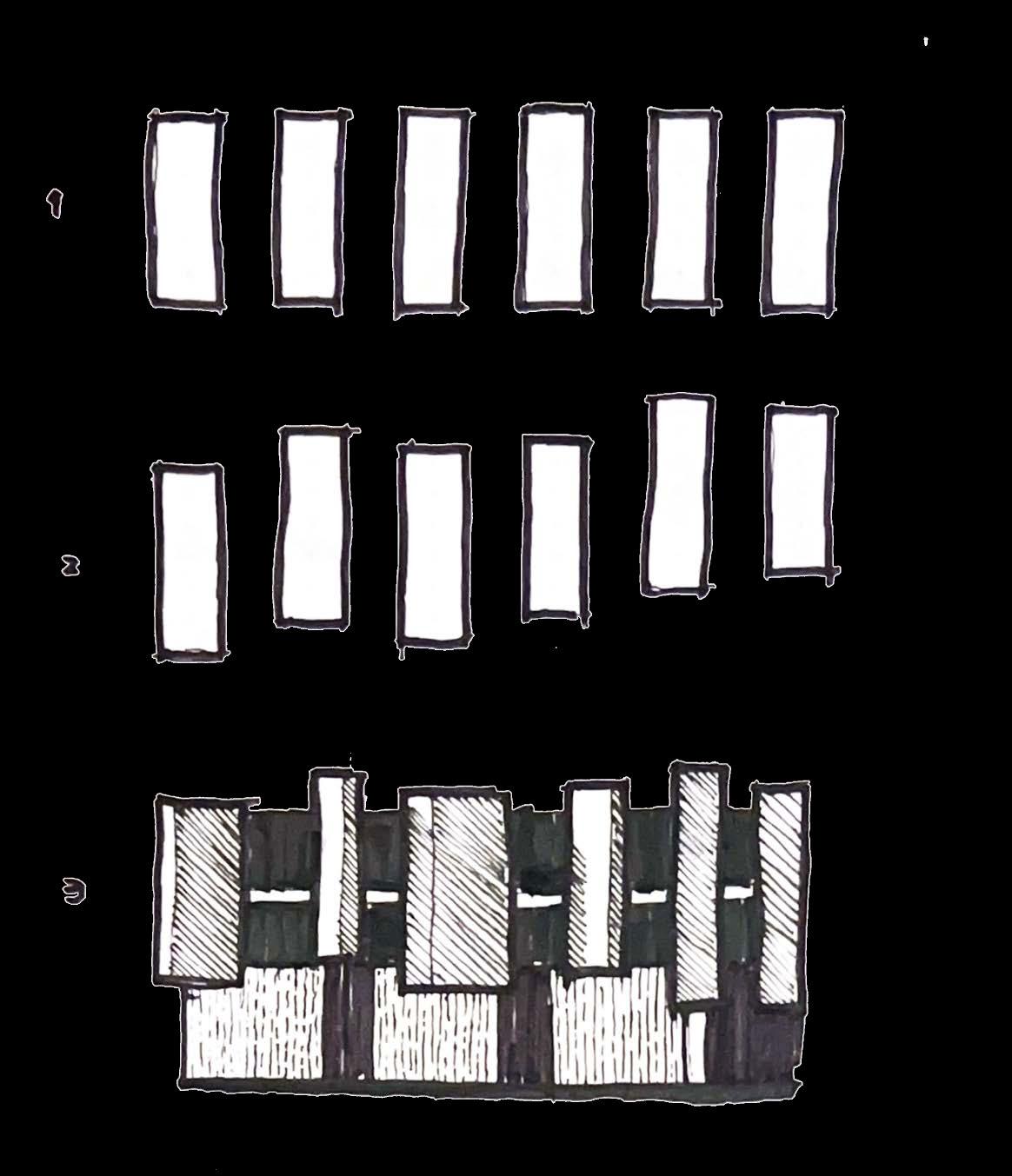 776 Summer Street Block A is a seven story residential development in South Boston, part of a Planned Development Area Master Plan. The building’s footprint flls the block, consisting of three bar volumes, each with its own material character and facade composition. In preparation for a Boston Civic Design Commission full committee review, I was tasked with composing facade designs options for each volume. These iterations investigated dynamic relationships of