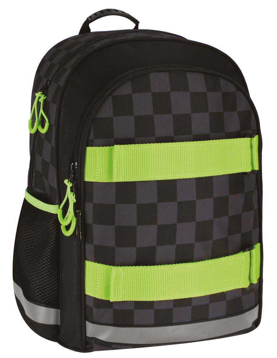 Połączenie czarno-szarej kraty i energetyzującej zieleni doskonale uzupełni każda młodzieżową stylizację! Plecak o wymiarach 39,5x29x20 cm i pojemności 23 l. Plecak szkolny z jedną główną, pojemną komorą i praktyczną przednią kieszenią, która umożliwia wygodny dostęp do najpotrzebniejszych drobiazgów.