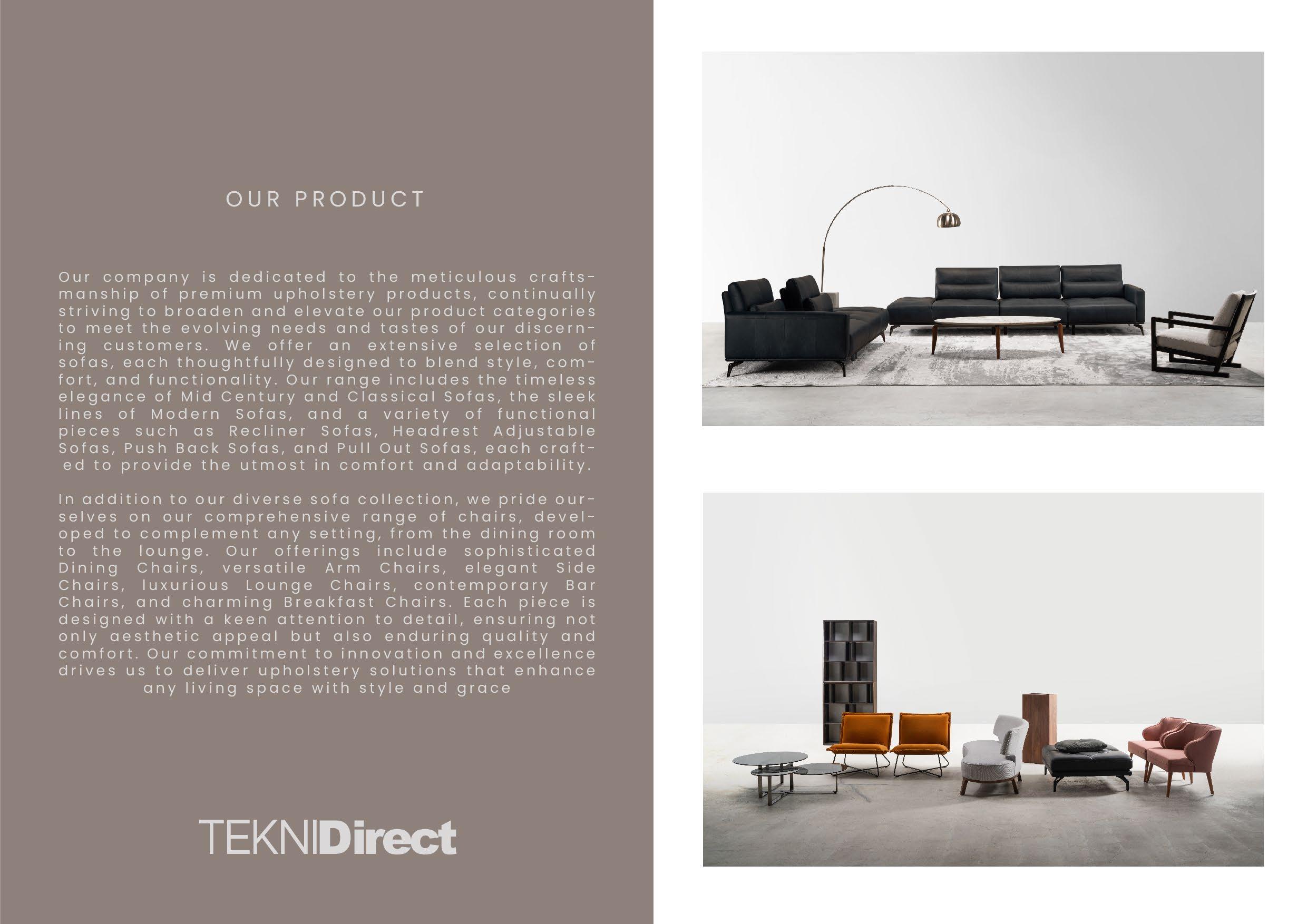 Welcome to Tekni Direct, your go-to premium sofa outlet where luxury meets exceptional craftsmanship. At Tekni Direct, we bring the finest in sofa design, combining world-class production techniques with the artistry of Malaysian workmanship. Our collections feature a wide selection of designs, materials, and modular options, all crafted with imported leathers and fabrics sourced from around the globe.