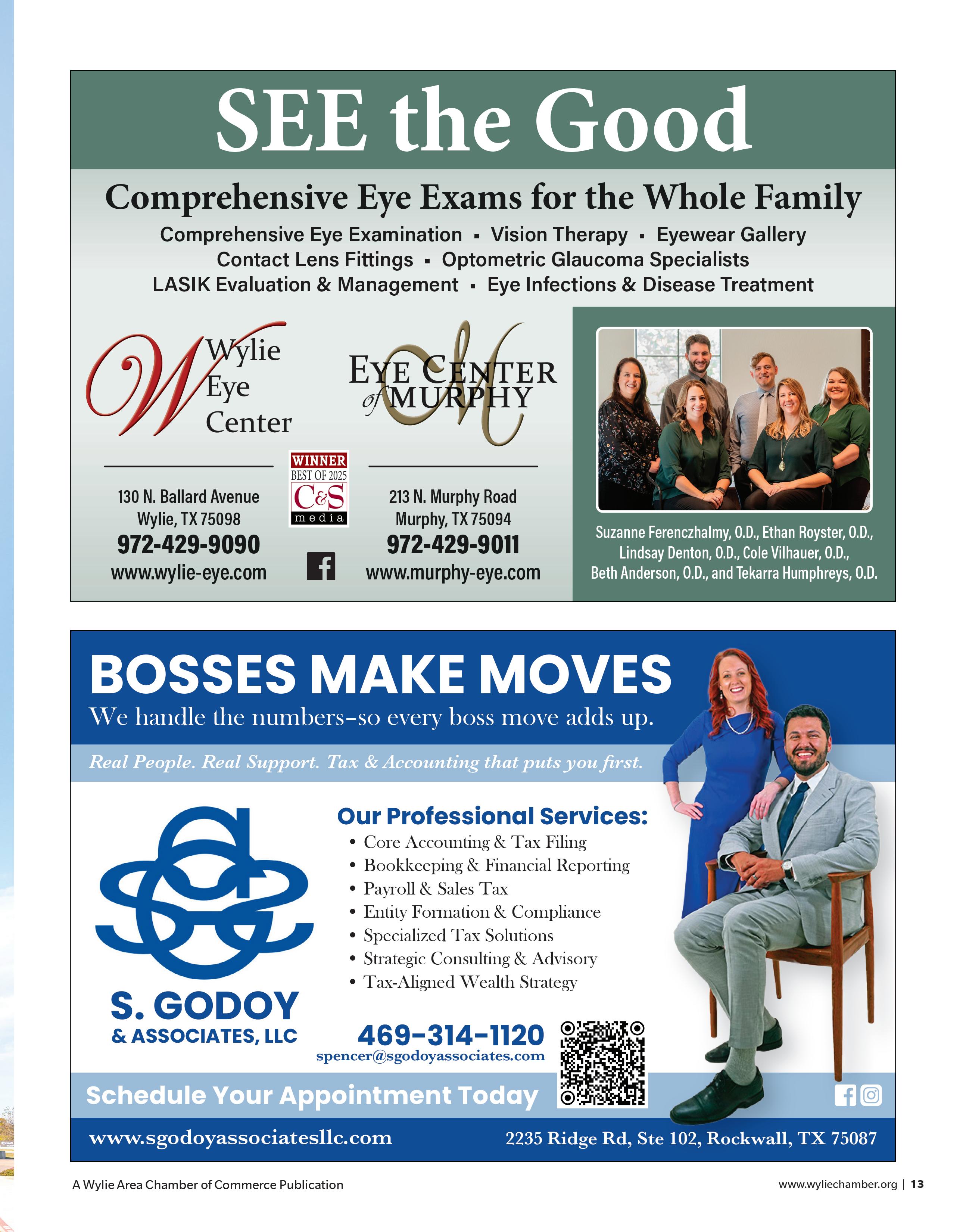 We proudly celebrate and thank the Chamber members who advertise in this publication. Their investment brings these pages to life and reflects a shared belief in the power of supporting one another locally. We also extend our heartfelt appreciation to all Chamber members who continue to invest in their businesses by investing in the Chamber—fueling connection, collaboration, and the momentum that keeps Wylie moving forward.
