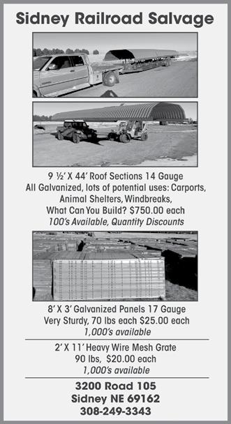 Wyoming Livestock Roundup • Volume 35 No. 46 • March 9, 2024 B10 March 9, 2024 4 THE ROUNDUP GETS RESULTS E-mail your ad to denise@wylr.net Place Your Pipe Ad Here • Handles Calves up to 300 lbs. • Operates off tractor, bale bed or remote hydraulic unit. Call Darin Coyle, Big Horn Livestock Services, Inc. 307-851-1634 • www.bighornlivestock.com Rupp Hydraulic Calf Tables • Handles Calves up to 300 lbs. • Operates off tractor, bale bed or remote hydraulic unit. Call Kevin McClurg, Big Horn Livestock Services 307-751-1828 • bighornlivestock.com Rupp Hydraulic Calf Tables $5,250 Equipment PIPE FOR SALE!! 2 7/8”, 3 1/2” tubing, 4" drill pipe, 4 1/2" casing, 5" casing, 7" casing. Rods 3/4", 7/8” and 1" located in Montana, can ship anywhere. Call Mike • 602-758-4447