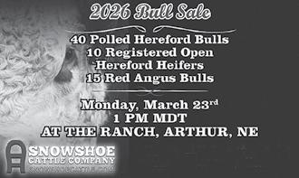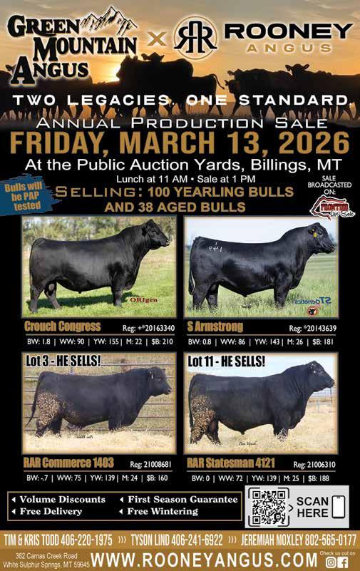 Russell’s Reflected R Ranch 719-469-2857; Bulls private treaty All female dispersal Dec. 1, 2026 www.ReflectedRRanch.com