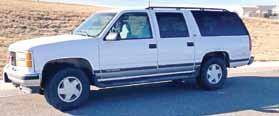 1999 GMC SUBURBAN 1500 SLE, 4WD, 5 7L , 350 c i , 9 passenger, A/ C, cruise control, CD and cassette player luggage rack, 42 gallon fuel tank, power seats, tow package tilt wheel tow hooks, block heater, owner's manual, mechanically sound, minor hail damage and some quarter panel rust, 209k miles, $4000 Hearing impaired, text only to 307-630-8416