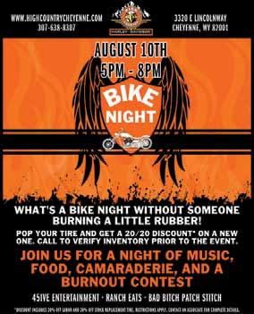 SWANNY'S WINDOW TINTING AND AUTO D et ai l We s p e c i al i ze i n c o m m e rc i al an d au to w i n d ow t i nt i n g , p rofe s s i o n al d et ai l i n g an d v i ny l g rap h i c s 21 2 W 5 t h S t , 3 07-221 -0 6 87 BIKE NIGHT, AUG 10, 5PM-8PM JOIN US FOR a night of music, food, camaraderie and a burnout contest High Country Harley Davidson 3320 E Lincolnway, w w w h i g h c o u nt r yc h eye n n e c o m