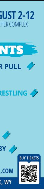 JUL 29 CODY JOHNSON with special guest Whiskey Myers JUL 22-30 PRCA RODEO The CFD™ Ticket O ce is the only authorized source of tickets for our event. Tickets may be purchased online or by phone. Concert $77-$107 PRCA Rodeo $23-$48 PBR Bull Riding $25-$105 Carnival Armbands $40/session $150/10 days CFDRODEO.COM 307-778-7222 JULY 21-30 2023