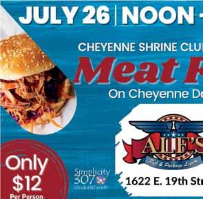 CHEYENNE SHRINE CLUB PRESENTS: Meat Fest! On Cheyenne Day, Wed, July 26, at Alf's Pub, 1622 E 19th St only $12 per person, 12pm-4pm or until sold out Proceeds benefit the Cheyenne Shrine Club Simplicity 307 Vendor and Events