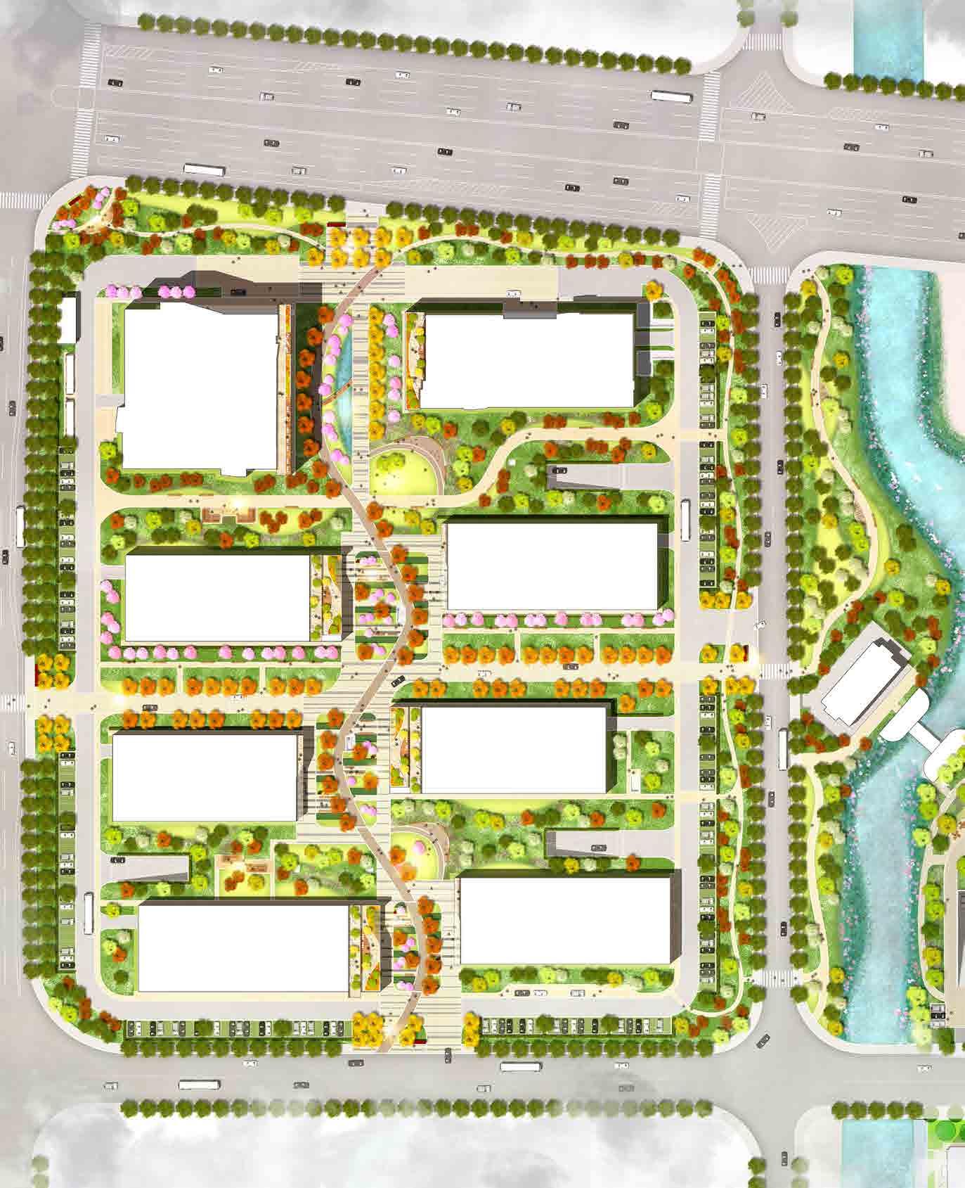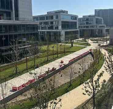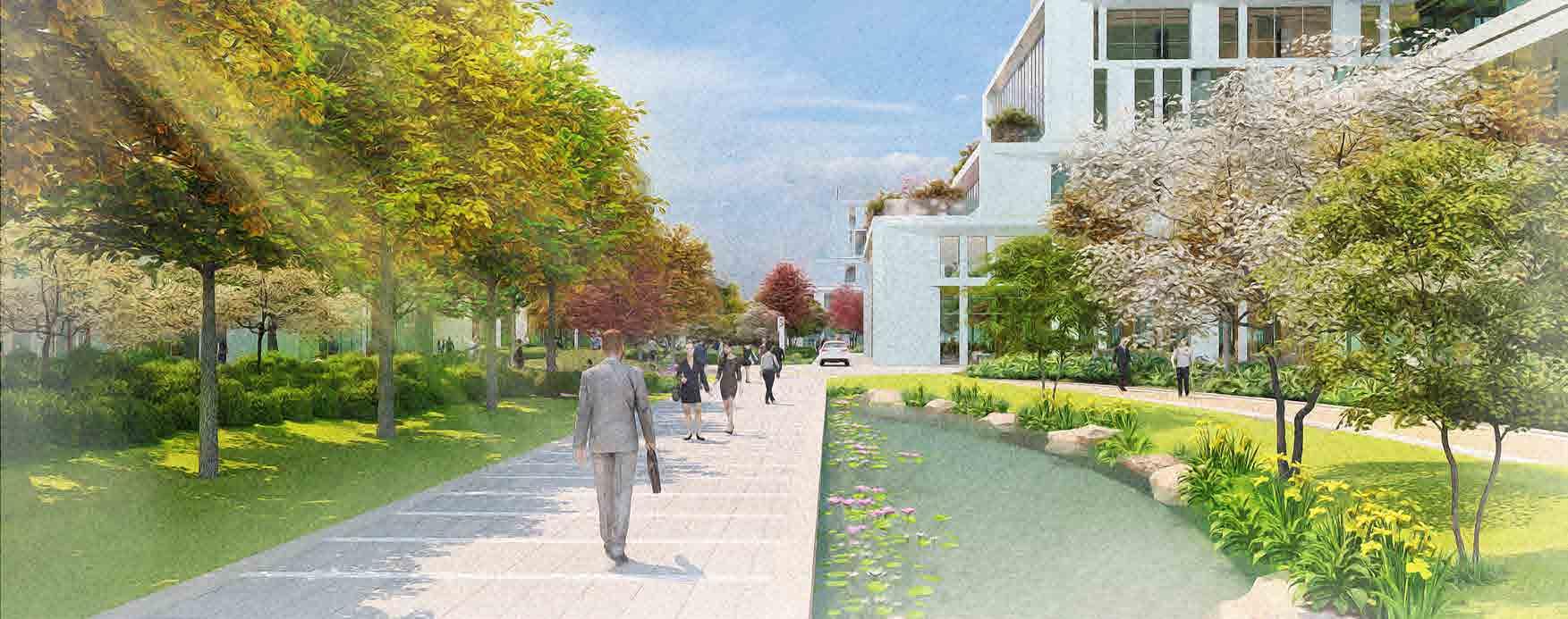 A 5.8-hectare science and research campus comprising eight office buildings. Appointed directly by the client as landscape consultant, delivering services from concept design through to construction completion. The landscape establishes a coherent campus identity, integrating circulation, courtyard spaces and waterside environments into a unified spatial framework.