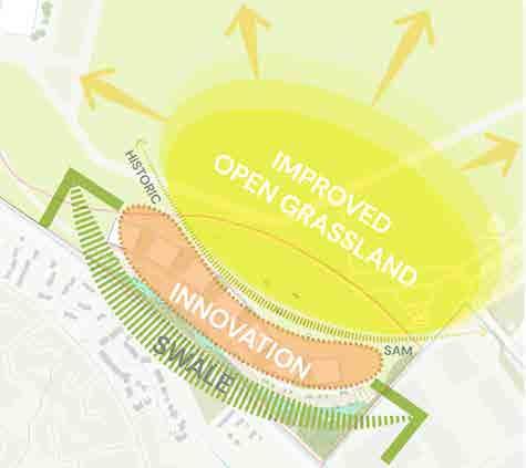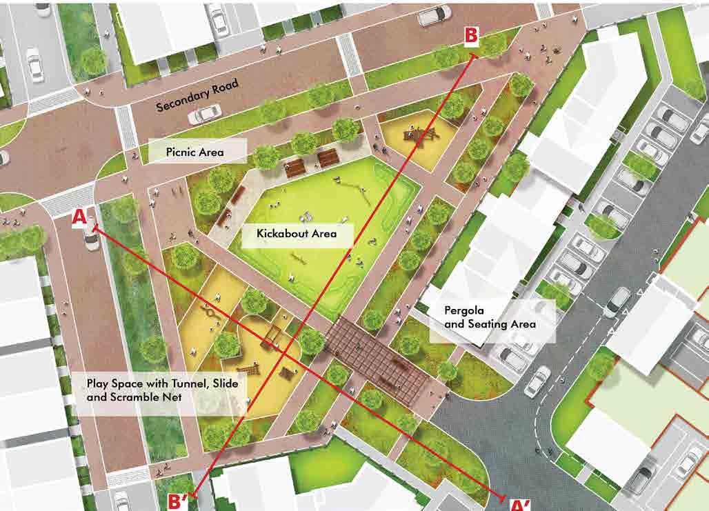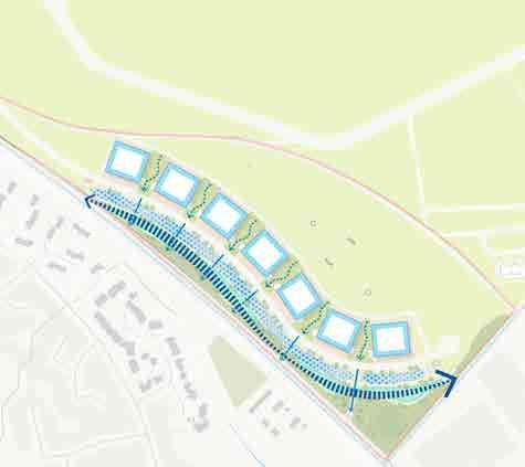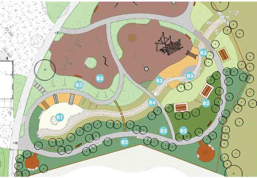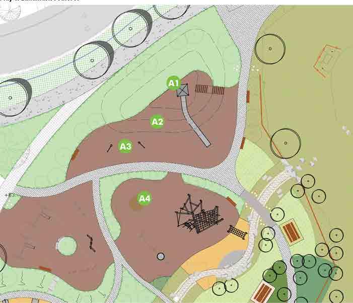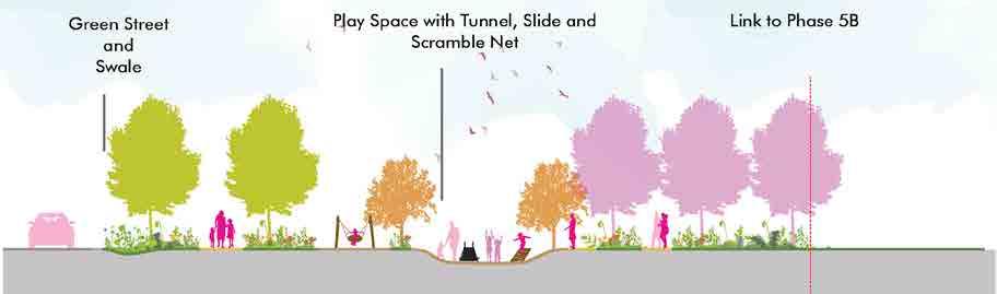 Pioneer Play (3,500sqm) forms the central civic landscape and gateway to the wider SANG network, reinforcing woodland character while establishing a strong community focal space.